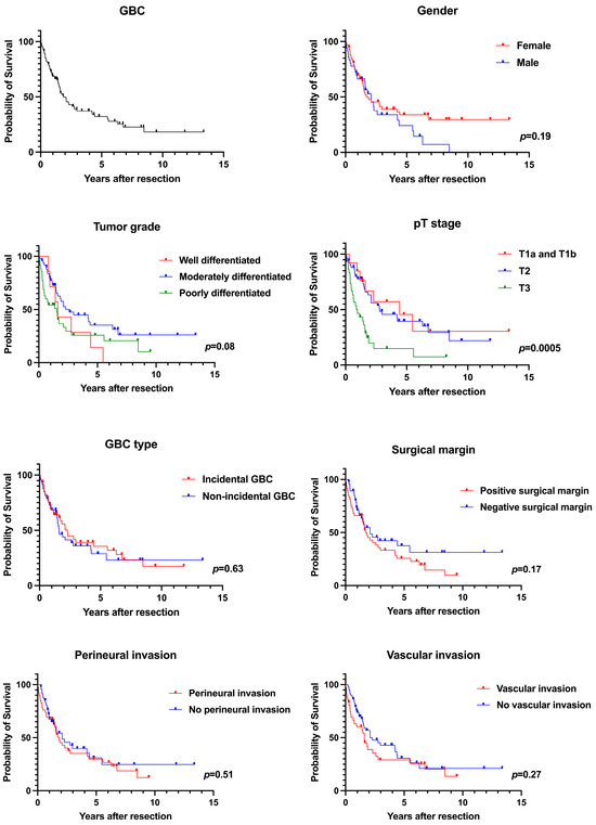 GBC is an aggressive malignancy with poor prognosis and a median survival of 3–22 months [15]. GBC is often diagnosed at advanced stages, and complete surgical resection remains the only potential curative treatment in patients who are candidates for surgery [16,17]. In our study, we assessed the characteristics and the survival outcomes of patients with resectable GBC and reported our single, tertiary care experience.