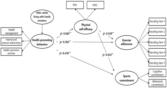 Considering Korea is fast progressing toward a super-aged society, discussions on older adults’ participation in regular physical activity are ongoing. This is because regular physical activity helps control physical, psychological, and social decline. As part of these efforts, this study verified the relationship between HPBs, PSE, exercise adherence, and sports commitment among older adults who participate in sports activities and compared the relationships among those who live alone and those who live with family members.