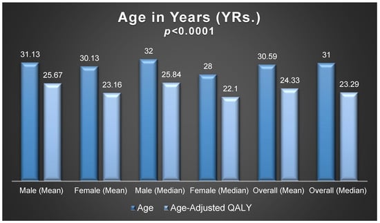 Age and age-adjusted QALYs among male and female patients.