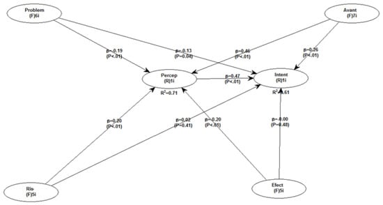 In order to validate a particular model, several indicators of compliance need to be analysed. In Table 3, it can be observed the results that were obtained after testing it in WarpPls. The value of p was less than 0.001 for the indicators analysed in this econometric model. Moreover, the value of the APC was 0.215, that of the ARS indicator was 0.661 and that of the AARS was 0.651. The value of the AVIF indicator was 1.972, a value lower than 3 which illustrates an ideal situation for the proposed model. AFVIF had a value of 2.271, less than 3, which is a very good value for the model. The value of GoF is 0.744, which illustrates that the proposed model is accepted. SPR was 0.9, and the RSCR, SSR, and NLBCDR have the value of 1, confirming that the proposed conceptual model is accepted.