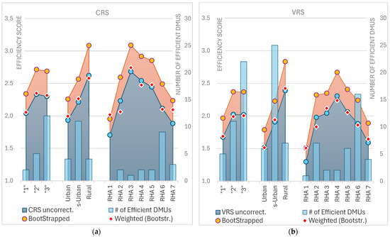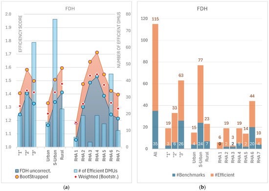 This study addresses potential biases by identifying and excluding outliers and applying the bootstrap method to assess the robustness of results at specific statistical significance levels. Additionally, the super-efficiency method is used to classify efficient units and identify those with unique production profiles that warrant closer examination, while the Free Disposal Hull (FDH) model highlights indisputable benchmark units that outperform others across all dimensions. Furthermore, this study is the first to report results across regions stratified by levels of urbanization, using both Eurostat [38,39] and FAO [40] typologies, and by geographical area as defined by the administrative boundaries of the seven Health Regional Authorities (RHAs/YPE) in the Greek health system.