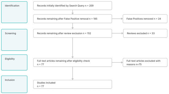 The articles and meta-data retrieved from the initial search query were managed using Zotero 7, an open-source reference management software. Zotero enabled an efficient organization, screening, and annotation workflow during the entire process. After automatic exclusion, the manual process of screening titles, abstracts, and keywords took place. The publications were excluded from the result set if they did not align with the inclusion and exclusion criteria. Review articles were not included in this review because of a lack of comparability and different review approaches. A selection of reviews has been included in Section 1.2. The inclusion and exclusion criteria have been defined for the manual screening process. An overview of the inclusion and exclusion criteria can be seen in Table 1.