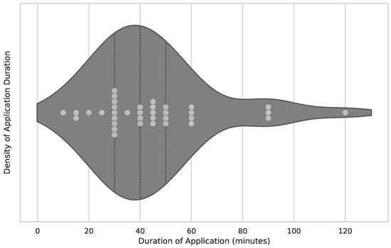 | Engagement Intensity with application | A set of numeric values representing the engagement intensity of applied interventions. If the application solves a detection or assessment task, it is often conducted as a single intervention. Therefore, only a single application time is extracted from the publication. |