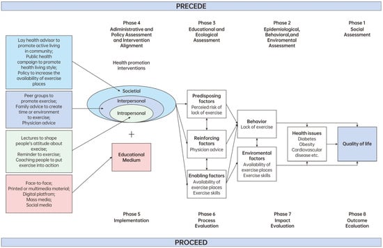 - Barbara, K.; Rimer, K.V.; Glanz, K. Ecological model of health behavior. In Health Behavior: Theory, Research, and Practice, 6th ed.; Wiley: New York, NY, USA, 2024; pp. 43–57, Chapter 3. [Google Scholar]