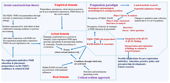 The interconnections of social constructivism, critical realism, and pragmatism to explain the NQMs’ KASH and impact on PMH role preparedness [26].