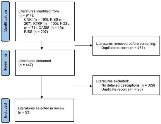 PRISMA flow chart. Abbreviations: CNKI, China National Knowledge Infrastructure Database; KISS, Korean Studies Information Service System; KTKP, Korean Traditional Knowledge Portal; NDSL, National Digital Science Library; OASIS, Oriental Medicine Advanced Searching Integrated System; RISS, Research Information Sharing Service.