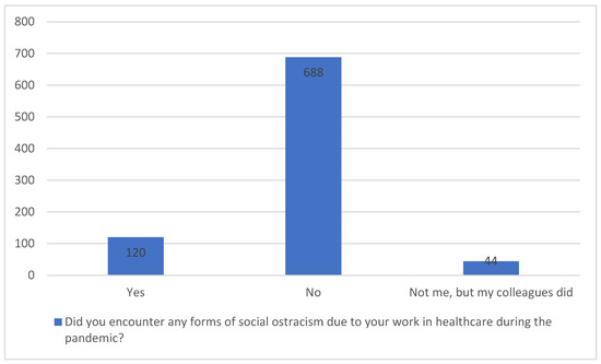 The majority of participants (80.8%) did not report experiencing social ostracism due to their work during the pandemic. However, 14.1% of healthcare workers reported personal experiences of ostracism, and 4.9% observed such exclusion among their colleagues. While the number of participants directly affected by social ostracism was relatively small, its impact is significant.
