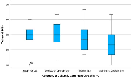 Comparison of Technical Skills scores across nurses’ perceptions of the adequacy of culturally congruent care delivery.