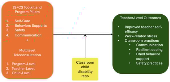 - Adoption: Does the child disability ratio in classrooms moderate the effectiveness of the intervention on teacher outcomes for centers receiving JS+CS compared to active controls (see Figure 1)?