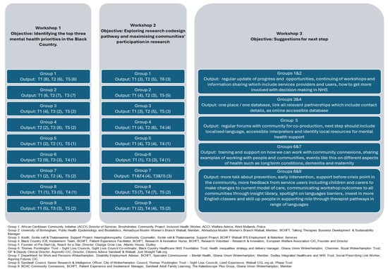 All participants were informed that data gathered from the workshops would be used by Community Connexions to identify the top 3 mental health priorities in the Black Country. All attendees consented to their anonymised data being collected for research and publishing purposes.