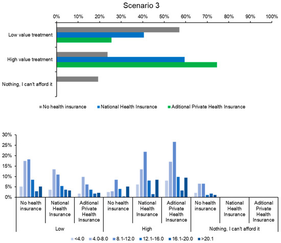 Selection of affordable vs. expensive treatment based on insurance type in Scenario 3.
