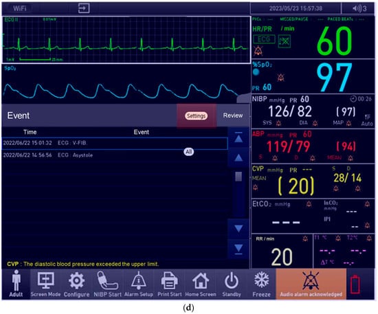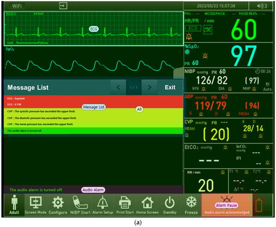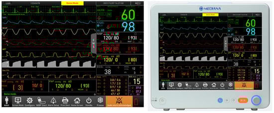 Patient monitoring devices are among the most widely utilized tools in hospitals, essential for tracking and managing patients’ vital signs across various clinical environments [1]. These devices are especially crucial in intensive care units (ICUs) and operating rooms, where the continuous observation and the evaluation of patient conditions are paramount [1,2,3]. By providing real-time data on vital signs, patient monitoring devices help prevent deterioration in patient health and support timely medical interventions.
