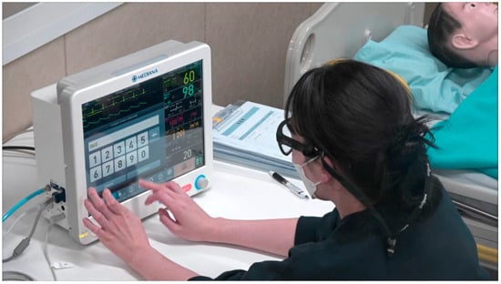 As shown in Figure 2, Eye tracking involves monitoring the gaze of a participant by analyzing the movement of the pupil via a camera [14,15,16,17,18]. Although research into eye tracking is expanding, its application for evaluating medical devices remains limited [18]. Since medical devices are used directly with patients, improving their usability is essential to ensure convenience and efficiency for medical staff and users. Eye tracking can play a significant role in enhancing this usability.