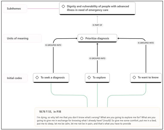 Two themes were developed from the data analysis that represent the main sources of threats to the dignity of people with advanced illnesses who are treated in EDs. The first is related to the characteristics of care in EDs and the complex situation of patients with advanced illnesses, which makes them more vulnerable. The close relationship between vulnerability and dignity at the end of life has been problematized in other studies [], which stress that we must be mindful of the interplay between dignified vulnerability and vulnerable dignity []. This study also highlights the inextricable link between dignity in advanced illness and the experience of extreme existential and social vulnerability in EDs. Losing control over one’s decision-making process has been identified as a threat to dignity in this study. Similarly, another study highlighted the importance of supporting an individual in their decisions, even if we disagree [], and the significance of feeling like a person and not a patient [].
