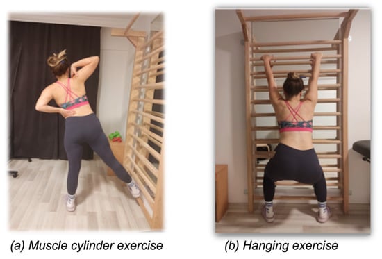 Examples of (a) muscle cylinder and (b) hanging exercises.