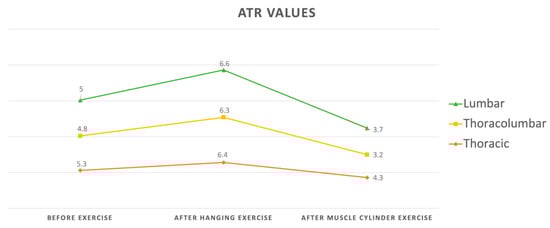 Changes in ATR values after semi-hanging and muscle cylinder exercises.