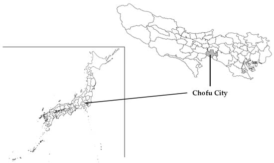 Geographical locations of the study areas (Chofu City, Tokyo, Japan).