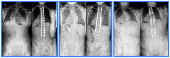 - Latalski, M.; Fatyga, M.; Sowa, I.; Wojciak, M.; Starobrat, G.; Danielewicz, A. Complications in growth-friendly spinal surgeries for early-onset scoliosis: Literature review. World J. Orthop. 2021, 12, 584–603. [Google Scholar] [CrossRef] [PubMed]