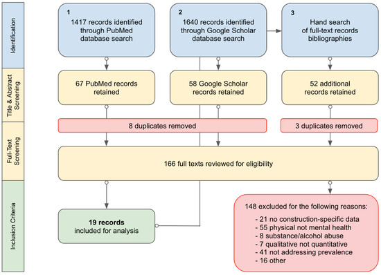 - Following on from this, we searched PubMed (years: 2013–2023) using combinations of keywords related to construction, prevalence, as well as anxiety, depression, psychological distress, trauma, stress, and suicide ideation. To cross-check PubMed searches, Google Scholar was searched using the same keywords and date range (2013–2023);