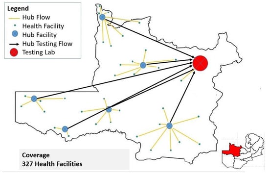 - Nichols, B.E.; Girdwood, S.J.; Crompton, T.; Stewart-Isherwood, L.; Berrie, L.; Chimhamhiwa, D.; Moyo, C.; Kuehnle, J.; Stevens, W.; Rosen, S. Impact of a borderless sample transport network for scaling up viral load monitoring: Results of a geospatial optimization model for Zambia. J. Int. AIDS Soc. 2018, 21, e25206. [Google Scholar] [CrossRef] [PubMed]