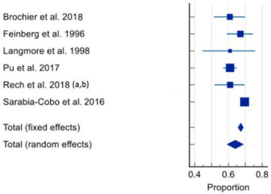 To our knowledge, this is the first SR and meta-analysis reporting on the prevalence of dysphagia in individuals living in RACFs using appropriate assessment methods, and in subgroups at higher risk, including those with nervous system diseases, dementia, malnutrition, and poor dentition. The prevalence of dysphagia in individuals living in RACFs ranged from 16 to 69.6% [60,66]. Meta-analysis of the seven eligible studies determined that the pooled prevalence of dysphagia was 56.11%. This review, therefore, suggests that the prevalence of dysphagia in this population and setting is high. The prevalence of dysphagia in the subgroups of interest, however, could not be estimated via meta-analysis due to a paucity of studies and lack of available data.