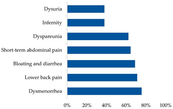 - Moore, J.S.; Gibson, P.R.; Perry, R.E.; Burgell, R.E. Endometriosis in Patients with Irritable Bowel Syndrome: Specific Symptomatic and Demographic Profile, and Response to the Low FODMAP Diet. Aust. N. Z. J. Obst. Gynaecol. 2017, 57, 201–205. [Google Scholar] [CrossRef] [PubMed]