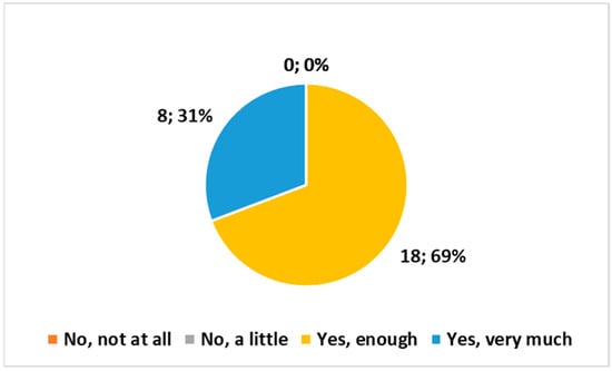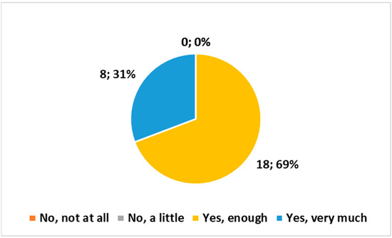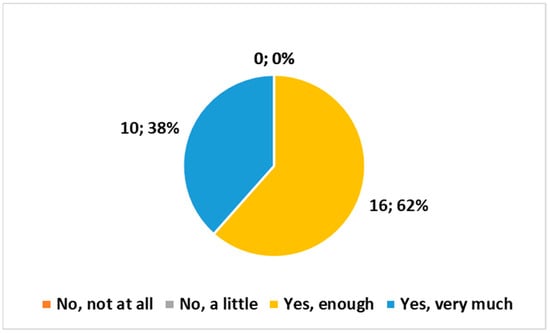 None of the three questions received negative responses. All three exhibited a preference for the response “Yes, enough”, followed closely by “Yes very much”. The χ2 test indicated high significance (p < 0.01) in all three cases.