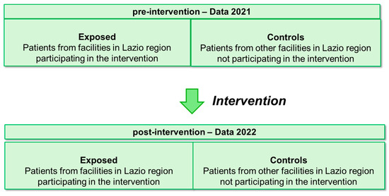 The quantitative assessment of effectiveness was carried out through a prospective quasi-experimental pre- and post-intervention study with a control group. The pre- and post-intervention periods considered were the years 2021 and 2022, respectively.