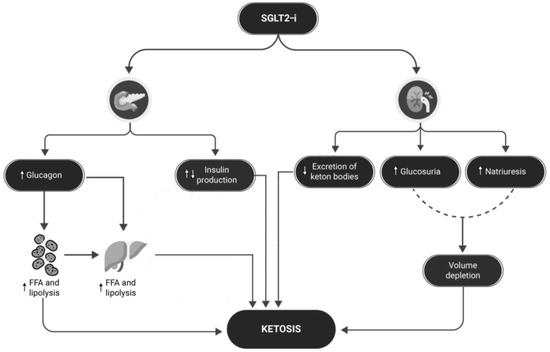 - Taylor, S.I.; Blau, J.E.; Rother, K.I. SGLT2 Inhibitors May Predispose to Ketoacidosis. J. Clin. Endocrinol. Metab. 2015, 100, 2849–2852. [Google Scholar] [CrossRef]