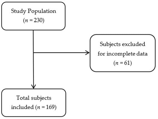 Subjects were excluded if they had incomplete data. Pregnant women or breastfeeding were not included.