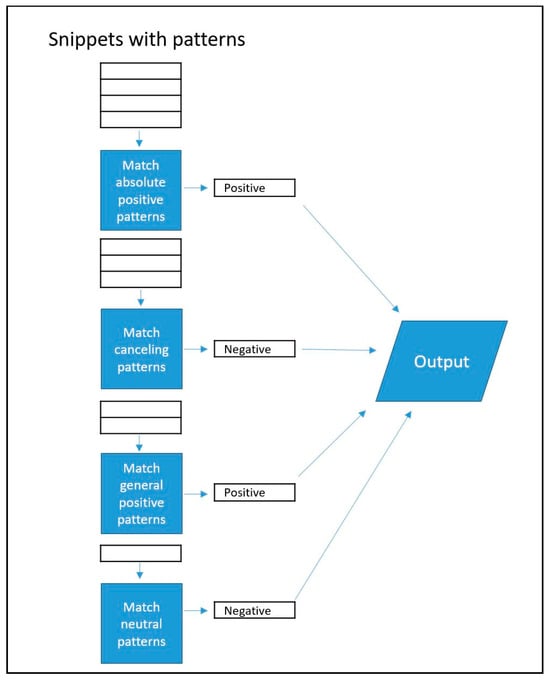 Rule-based classification. Beginning at the top, snippets with relevant patterns are classified sequentially according to pattern type.