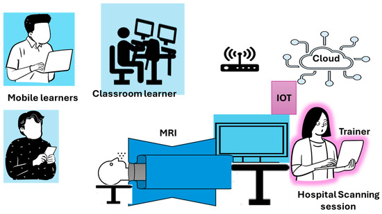 Figure 6), learners can have the same image on their respective screens as the specialist conducting it via IoT, follow the analysis of the scan, and engage with the specialist for better comprehension.