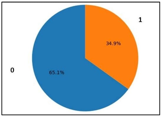 Figure 3 shows a pie chart representing the distribution of the outcome variable of the PIMA dataset. The dataset is used to predict the presence or absence of diabetes. The outcome variable, which indicates whether the patient has diabetes (1) or not (0), is displayed on the pie chart with percentage contribution. The results show that 500 non-diabetic subjects, which accounts for 65.1%, and 268 diabetic subjects, accounting for 34.9% of the total subjects, were enrolled in this study.