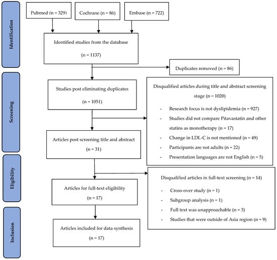 Chicago/Turabian StyleVo, Nam Xuan, Huong Lai Pham, Tan Trong Bui, and Tien Thuy Bui. 2025. "Systematic Review on Efficacy, Effectiveness, and Safety of Pitavastatin in Dyslipidemia in Asia" Healthcare 13, no. 1: 59. https://doi.org/10.3390/healthcare13010059