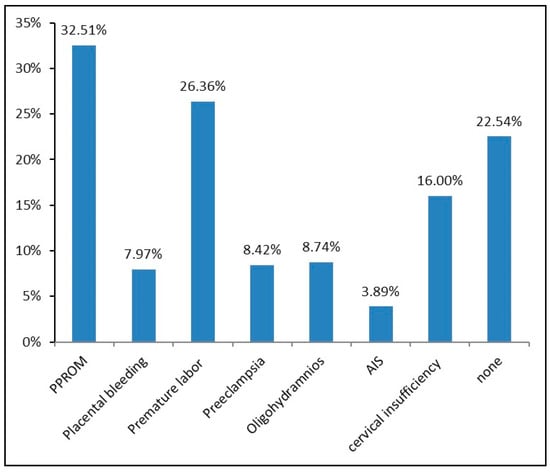Distribution of diagnoses in the study population, responsible for the induction of lung maturation, n = 1544. AIS = amniotic infection syndrome; PPROM = preterm premature rupture of membranes.