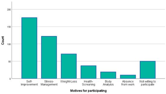 The survey initially included 588 participants, with the majority hailing from Greece and Cyprus (95%). A total of 85 individuals who did not meet the inclusion criteria and 18 whose responses were incomplete (fewer than 50% of the total questions answered) or sporadic (survey completed in less than three minutes) were excluded. The final sample comprised 485 workforce individuals aged 18 to 65 years, evenly distributed across four age groups: 18–29 years (27%), 30–39 years (26.8%), 40–49 years (23.1%), and 50–65 years (23.1%). Of these, 61.1% identified as women, 38.3% as men, and 0.6% as non-binary. The vast majority of participants held at least a bachelor’s degree (80.6%) and demonstrated intermediate or higher proficiency in the English language (84.7%). Regarding their willingness to participate in a future corporate wellness intervention, 74.3% expressed a positive interest. Among them, 61.5% were motivated by goals of self-improvement or stress management. Additionally, the most preferred format for the intervention was a hybrid approach, combining online and onsite sessions (36%) (Figure 1, Figure 2 and Figure 3). These demographic findings indicate a well-educated workforce that values self-improvement and stress management. The preference for a hybrid intervention underscores the importance of flexible wellness solutions to accommodate diverse schedules and work environments.