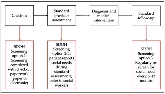 - Thomas-Henkel, C.; Schulman, M. Screening for Social Determinants of Health in Populations with Complex Needs: Implementation Considerations; Center for Health Care Strategies: Hamilton, NJ, USA, 2017. [Google Scholar]