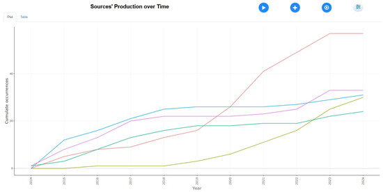 Figure 5 shows that research on tobacco and public health has steadily grown in critical journals. It shows that by 2024, the International Journal of Environmental Research and Public Health had become the leading journal, surpassing its position after 2017. The International Journal of Molecular Sciences experienced a surge in post-2021, focusing on molecular research. PLOS ONE showed consistent growth, leveling off after 2018, while the Cochrane Database of Systematic Reviews consistently contributed through systematic reviews. These trends underscore increasing research in environmental, molecular, and review-based tobacco studies. These trends indicate a diversification in tobacco research, with increasing emphasis on environmental, molecular, and systematic review-based studies. The growth in publications highlights the evolving landscape of tobacco-related research, where interdisciplinary approaches are increasingly vital in understanding its health impacts. This trend is consistent with findings from other bibliometric studies (e.g., Xu et al., 2020) [38], which observed a rising convergence of environmental health and tobacco research, especially regarding secondhand smoke, e-cigarettes, and genetic effects. Numerous bibliometric analyses have similarly explored these intersections, reflecting a broader shift toward multidimensional perspectives in tobacco research. Recent studies have also identified emerging hotspots such as electronic health (eHealth), mobile health (mHealth), mental health, and the biological basis of nicotine addiction as key focal areas within smoking cessation research.