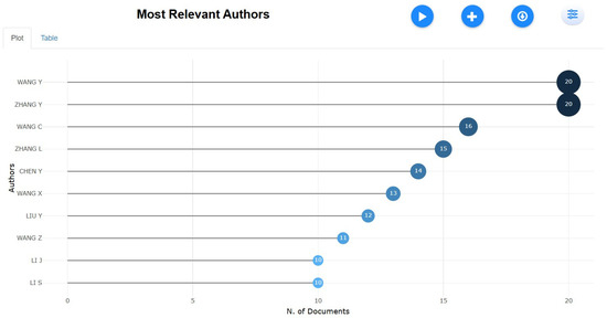 Figure 6 showcases the most prolific authors in tobacco research, with Wang Y and Zhang Y leading the field, each contributing 20 publications. Wang C (16) and Zhang L (15) also play significant roles, followed closely by Chen Y (14) and Wang X (13). Other notable contributors, including Liu Y (12), Wang Z (11), and Li J (10), further highlight the concentration of research output among a select group of highly active scholars. This trend underscores the pivotal role of a few key researchers in shaping tobacco-related studies, particularly in smoking and smokeless tobacco research. The dominance of these authors suggests strong academic networks, with significant contributions likely originating from leading research institutions in China and the U.S. These authors’ outputs are consistent with earlier bibliometric assessments (e.g., Yang et al., 2022) [39], which highlighted the dominance of Chinese researchers in both clinical and epidemiological tobacco studies. However, there is limited representation from African or Latin American scholars, which could signal a research gap or resource disparity in these regions.