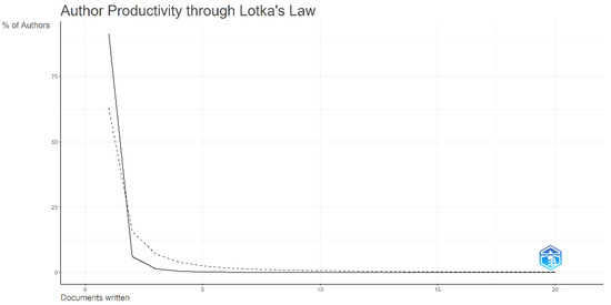 Figure 8 illustrates the application of Lotka’s Law in tobacco research, showing that a small number of prolific authors contribute the majority of publications. In contrast, a large proportion of authors publish only one or two papers. This pattern aligns with the inverse square law, where the number of contributors decreases as their publication count increases. Specifically, 91.4% of authors have published only one paper, while a significantly smaller fraction (6.1%) has authored two. The number of highly productive authors drops sharply, with only a handful reaching six or more publications. This trend reinforces the concentrated nature of research productivity in the field, emphasizing the critical role of a small group of highly active researchers in advancing tobacco-related studies. The law highlights that a minority of highly active authors are responsible for most of the scientific output, reinforcing the concentrated nature of research productivity in tobacco-related studies [40]. As reported by Chen et al. (2020) [34], this kind of concentration can lead to intellectual silos, potentially narrowing perspectives. Efforts to decentralize research, provide funding to LMICs, and promote collaborative authorship may help diversify thought leadership in the field.