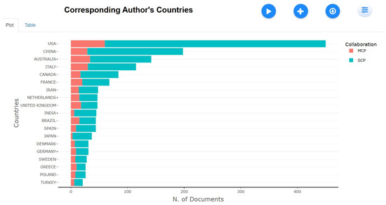 Figure 12 shows that the United States leads global tobacco research with 450 publications, including 390 single-country publications (SCP), indicating strong domestic research efforts and international collaborations. China follows with 198 publications (169 SCP), while Australia (142 articles, 108 SCP) and Italy (115 articles, 85 SCP) also make significant contributions. Canada (84 articles, 67 SCP) and France (68 articles, 48 SCP) maintain a moderate presence. Iran (48 articles, 34 SCP), the Netherlands (47 articles, 32 SCP), the United Kingdom (47 articles, 29 SCP), and India (45 articles, 39 SCP) show lower but consistent contributions. While the U.S. dominates both single-country and collaborative research, other nations, particularly China, Australia, and Italy, focus more on domestic research.