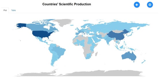This figure summarizes key bibliometric indicators, including the time span (2014–2024), document count (2694), source types (1147), keyword frequency (8445), annual growth rate (7.3%), and document age (5.08 years). The rising trend in tobacco-related research reflects the global increase in scientific publications, particularly in health-related disciplines. Tracking publication trends across journals, authors, and countries allows public health institutions to identify knowledge gaps, allocate funding more efficiently, and design informed policies [32,33]. Bibliometric analysis is widely used to assess research activities and identify emerging trends in specific fields [34].