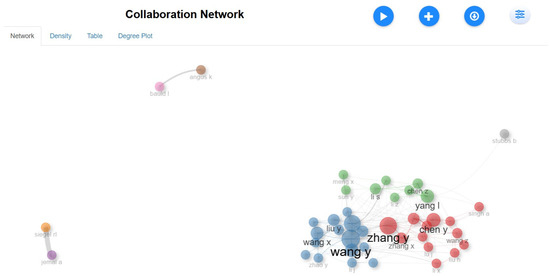Figure 21’s collaboration network reveals the U.S. as a central hub for international partnerships, with China and European countries also playing significant roles. India is increasing its global connections but remains less integrated. The co-authorship network shows strong collaboration, with red and blue clusters representing significant networks where larger nodes are key contributors. Isolated nodes indicate authors with fewer collaborations in niche areas. Thicker edges between nodes highlight strong partnerships and frequent co-authorship.