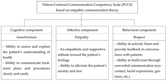 Since communication interventions have broad effects, a consistent analytical framework is essential for evaluation [10]. Various communication competency scales have been developed and applied across different healthcare fields [18,19,20]. These include, first, the Global Interpersonal Communication Competence Scale (GICC) [18], which has an adequate number of items to properly reflect the necessary constructs and ensure content validity; second, the Nursing Assessment Communication Competence Scale (NACCS) for measuring the communication competency of clinical nurses [19]; and third, the Communication Ability Scale for assessing the communication skills of medical students and trained simulated patients [20].