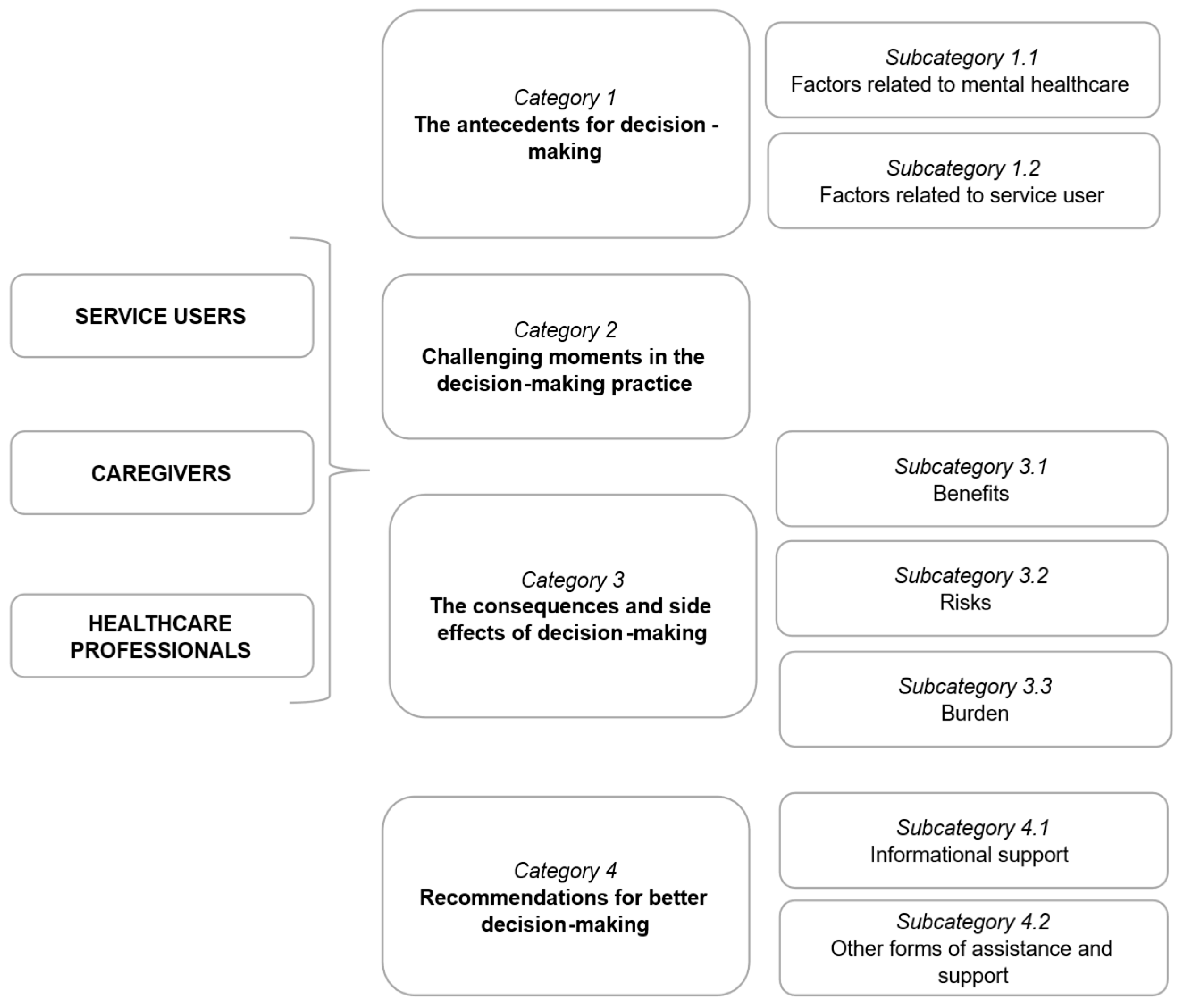 APA StyleOlsena, S., Stars, I., Rozenberga, E. E., Konstantinova, K., & Baidina, K. (2025). Triadic Perspectives on Decision Making in Psychiatry: A Qualitative Study on Service Users, Caregivers and Healthcare Professionals in Latvia. Healthcare, 13(12), 1416. https://doi.org/10.3390/healthcare13121416