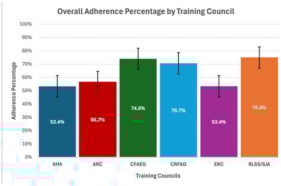 Figure 5 was created to better visualize the overall adherence percentage for each training council, combining the results from all four scenarios.