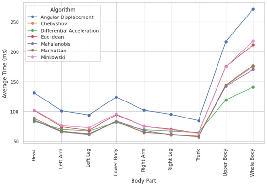 - Given the number of body landmarks analyzed, this study has shown that using the entire body consistently yields reliable results. However, combining a specific computational method with a particular body region (e.g., the lower body) produces comparable results, with an error margin below 10%. For example, Minkowski and Mahalanobis distances yield similar results in estimating the amount of movement when using either the whole body or only the lower body, with a movement difference of % and 1%, respectively.