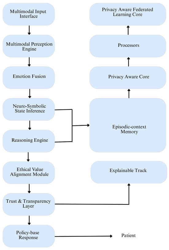 It integrates multimodal inputs, neuro-symbolic reasoning, and emotion fusion to support ethical, explainable, and trustworthy patient care. This paper fills that gap by the following: