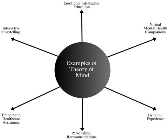 ToM applications in AI-driven healthcare and human–computer interaction. These include virtual mental health companions, empathetic healthcare assistance, personalized recommendations, emotional intelligence education, interactive storytelling, and dynamic patient engagement. ToM-enabled systems aim to understand and respond to user emotions, intentions, and social cues, enhancing contextual and human-centered care.