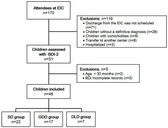 - Matson, J.L.; Hess, J.A.; Sipes, M.; Horovitz, M. Developmental Profiles from the Battelle Developmental Inventory: A Comparison of Toddlers Diagnosed with Down Syndrome, Global Developmental Delay and Premature Birth. Dev. Neurorehabil. 2010, 13, 234–238. [Google Scholar] [CrossRef] [PubMed]